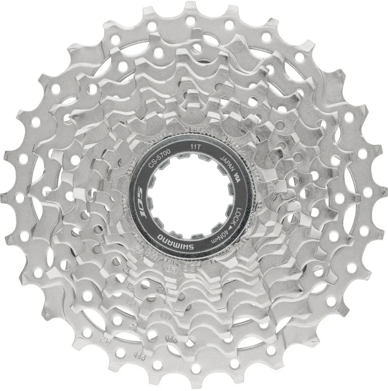 Spezifikationen:Einsatzbereich:RoadSchaltstufen:10-fachAbstufungen:11-25, 11-28Material Ritzel:StahlFreilaufkompatibilität:Shimano MTBHinweis:mit 1,85 mm Distanzring kompatibel zu Shimano Road 11-/12-fachTechnische Daten:Serie:105 5700Spider / Ritzelträger:1 (Aluminium)Empfohlene Kette:HG 10-fach (bspw. CN-6701)Kompatibilität:Schalt-/Bremsgriff:ST-6700, ST-5700, ST-4600, ST-R460, ST-4700, ST-4720, ST-4725, ST-RS405, ST-RX400Schaltgriff:SL-R780, SL-4600, SL-R460, SL-4700, SL-M7000-10, SL-M6000, SL-M4100, SL-M820, SL-M640, SL-M610, SL-T8000, SL-T6000, SL-T780, SL-T670, SL-T610Schaltwerk:RD-6700-A, RD-5701, RD-4601, RD-4700, RD-M820, RD-M640nur 11-28: RD-T780, RD-T670-A, RD-T610Kette:CN-7901, CN-6701, CN-5701, CN-4601, CN-7801, CN-6600, CN-5600, CN-M981, CN-M980, CN-HG95, CN-HG94, CN-HG75, CN-HG74, CN-HG54Features:HG-Kassette mit vernickelten Stahlritzelnstabil und besser schaltendoptimiertes SchaltgefühlGewicht sparender Leichtmetall-RitzelträgerLockring vernickeltTechnologie:HG-Kassette