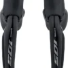 Die 105 ST-R7170 Di2 Schalt-/Bremsgriffe haben nach oben verlängerte Griffhörnchen, an denen sie sich sehr ergonomisch greifen lassen. Zudem passt Du die Griffweite mithilfe eines 2-mm-Innensechskantschlüssels ganz einfach an Deine Handgröße an. Dank des vergrößerten Bremsbereichs und der sensiblen Hebelwirkung hast Du volle Kontrolle über alle Bremsvorgänge, wobei der Druckpunkt ebenfalls einstellbar ist. Dabei wiegen die Schalt-/Bremsgriffe nur etwa 30 Gramm pro Paar mehr als das Ultegra-Modell. Natürlich kommt, wie zuvor bei Dura-Ace und Ultegra, die runderneuerte Di2-Plattform zum Einsatz. Das heißt, die ST-R7170 kommunizieren über ein Drahtlos-Protokoll mit dem Schaltwerk, welches wiederum mit dem Akku und indirekt mit dem Umwerfer verkabelt ist. Das bedeutet nicht nur blitzschnelle, hochpräzise Schaltvorgänge auf Knopfdruck. Durch den Verzicht auf Kabel am Cockpit sieht Dein Bike auch aufgeräumter aus, die Montage fällt Dir leichter und die Schaltung ist an dieser Stelle unempfindlich gegenüber Verschmutzung. Betrieben werden die STIs über Knopfzellen, die mehrere Jahre halten und von Dir selbst bei Bedarf ausgetauscht werden. Die Bremshebel bestehen aus leichtem Aluminium, die Griffkörper sind aus langlebigem Kunststoff gefertigt.
