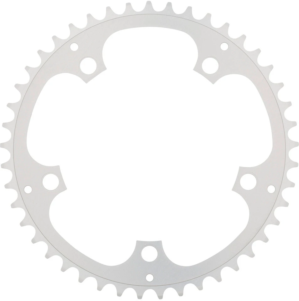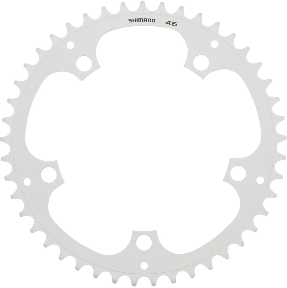 Spezifikationen:Einsatzbereich:City, Touring & TrekkingBefestigung:130 mm Lochkreis, 5-ArmZähne:42 Z, 45 ZSchaltstufen:1×9-fachTechnische Daten:Material:AluminiumFeatures:für Einfach- und ZweifachkettenschutzAusführungen:silber / 42 Zähne: