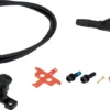 J-Kit ist ein einfaches Leitungsanschlusssystem für hydraulische Bremsen von Shimano, damit Du Deine Bremse unkompliziert und schnell montieren kannst. Die Bremsleitung ist im Lieferumfang noch nicht an der Bremse montiert, um die Verlegung im Rahmen zu erleichtern. Die Bremsleitung ist bei J-Kit bereits mit Öl befüllt und mit einer dünnen Membran versiegelt. Im J-Kit-Bremshebel befindet sich ein kleiner Dorn, der diese Membran bei der Montage durchstößt, sodass das Öl fließen kann.