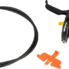 J-Kit ist ein einfaches Leitungsanschlusssystem für hydraulische Bremsen von Shimano, damit Du Deine Bremse unkompliziert und schnell montieren kannst. Die Bremsleitung ist im Lieferumfang noch nicht an der Bremse montiert, um die Verlegung im Rahmen zu erleichtern. Die Bremsleitung ist bei J-Kit bereits mit Öl befüllt und mit einer dünnen Membran versiegelt. Im J-Kit-Bremshebel befindet sich ein kleiner Dorn, der diese Membran bei der Montage durchstößt, sodass das Öl fließen kann.