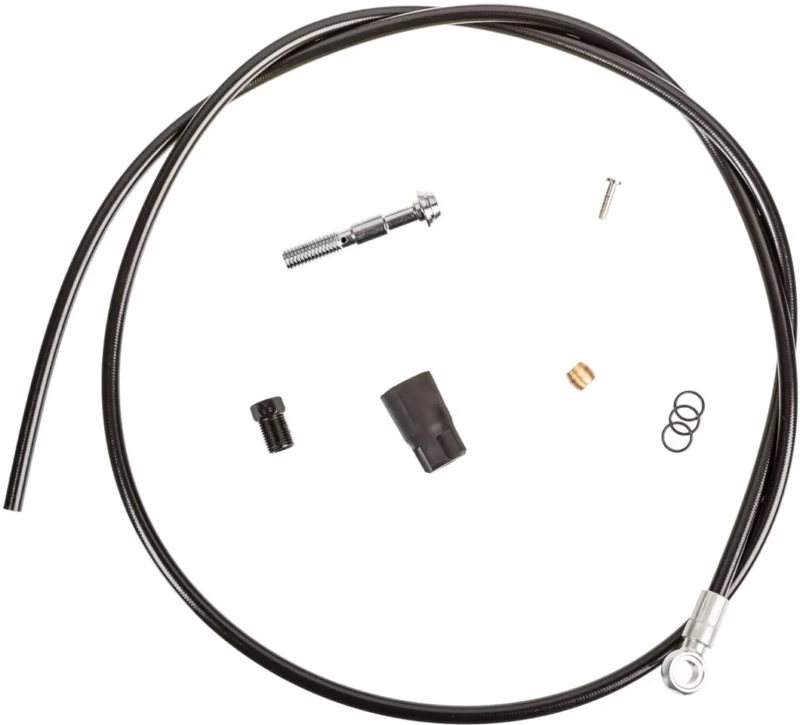 Die Shimano SM-BH90-SBM Bremsleitung hat auf der Bremssattel-Seite ein Banjo (Standard-Länge), während der Anschluss auf der Bremsgriff-Seite gerade erfolgt. Sie ist kompatibel mit u. a. XTR M9000, XT M8000 und SLX M7100. In Sachen Steifigkeit liegt die SM-BH90-SBM am äußersten Ende der Skala. Sie lässt sich, wie alle Shimano Bremsleitungen, problemlos kürzen.