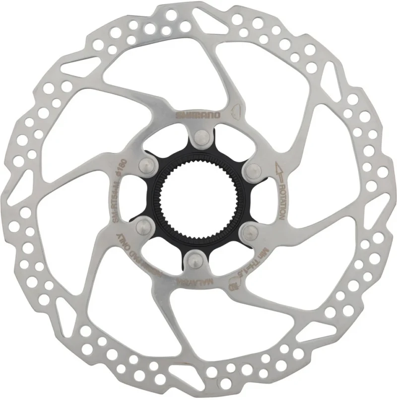 Die Shimano SM-RT54 Bremsscheibe kommt mit einem neuartigen Lockring, der an der Außenseite gezahnt ist. Sie darf ausschließlich mit Resin-Belägen verwendet werden. Ihr Körper besteht aus Edelstahl, der Spider ist aus Aluminium. SM-RT54 ist kompatibel mit Scheibenbremsen der Serien XTR, XT, SLX, Deore, Saint, ZEE, Alfine sowie mit vielen weiteren gruppenlosen MTB- und Trekking- Bremsen.