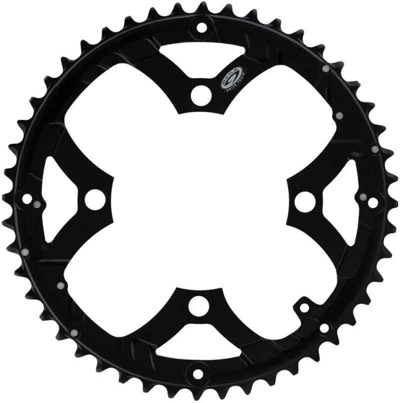 Spezifikationen:Einsatzbereich:All Mountain, Cross CountryBefestigung:104 mm Lochkreis (4-Arm)Zähne:44 Z, 48 ZSchaltstufen:3×9-fachTechnische Daten:Kombinationsmöglichkeiten:22-32-44 Z KSR, 26-36-48 Z KSRMaterial:AluminiumFeatures:Ausführung für KettenschutzringAusführungen:grau / 44 Zähne: