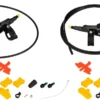 J-Kit ist ein einfaches Leitungsanschlusssystem für hydraulische Bremsen von Shimano, damit Du Deine Bremse unkompliziert und schnell montieren kannst. Die Bremsleitung ist im Lieferumfang noch nicht an der Bremse montiert, um die Verlegung im Rahmen zu erleichtern. Die Bremsleitung ist bei J-Kit bereits mit Öl befüllt und mit einer dünnen Membran versiegelt. Im J-Kit-Bremshebel befindet sich ein kleiner Dorn, der diese Membran bei der Montage durchstößt, sodass das Öl fließen kann.