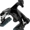 Die Felgenbremse BR-R9200 aus der Top-Rennradgruppe Dura-Ace von Shimano gibt es auch mit speziellen Bremsbelägen für Carbonfelgen. Das Modell weist die bewährte symmetrische Doppelgelenkkonstruktion auf und bringt etwa 30 Gramm weniger auf die Waage als die Ultegra-Version. Das liegt vor allem an den Cartridge-Bremsschuhhaltern aus Magnesium, die natürlich winkelverstellbar sind, und an der Hardware aus Titan. BR-R9200 überzeugt mit seiner effizienten, genau dosierbaren Bremsleistung. Du kannst damit Reifen bis 28 mm Breite fahren.