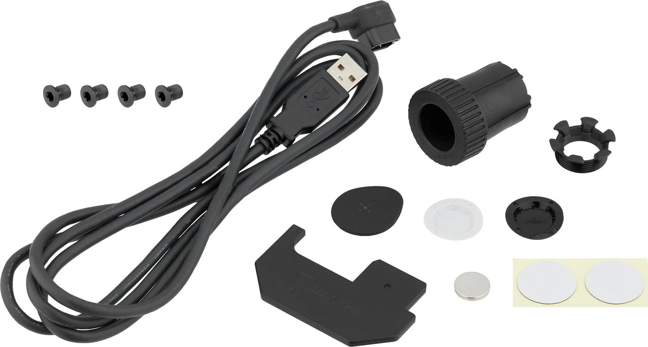 Der Lithium-Ionen-Akku befindet sich in der Steuereinheit am Kurbelstern und kann von Dir selbst leicht aufgeladen werden. Wenn er nach ca. 2,5 Stunden wieder ganz voll ist, hält er mindestens 300 Stunden lang. Das Ladekabel ist übrigens das gleiche wie für Deine Dura-Ace Di2-Schaltung. Auch die Firmware-Updates kannst Du über das E-Tube Project durchführen. Am Gehäuse der Steuereinheit findest Du eine LED, die Dir den Akkuladestand signalisiert, und eine Taste für eine problemlose Nullpunkt-Kalibrierung. Natürlich ist die ganze Konstruktion wasserdicht und es wird eine aktive Temperaturkompensation durchgeführt, sodass Du keine Bedenken bezüglich des Wetters haben musst. Den Magneten für die Trittfrequenzmessung kannst Du mithilfe des mitgelieferten Positionierwerkzeugs an der Kettenstrebe, dem Sitzrohr oder dem Unterrohr anbringen.