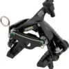 BR-R9210 aus Shimanos Spitzenrennradgruppe Dura-Ace ist ein Doppelgelenk-Felgenbremsenset für Direktmontage. Es besteht aus einer Bremszange für vorne, die direkt an der Gabel montiert werden muss, und einer Bremszange für hinten, die Du an den Sitzstreben festmachst. Das Modell bringt etwa 25 Gramm weniger auf die Waage als die Ultegra-Version, was vor allem an den Cartridge-Bremsschuhhaltern aus Magnesium liegt, die natürlich winkelverstellbar sind. Außerdem besteht die Hardware aus Titan. Eine Direktmontage begünstigt die Aerodynamik des Rads und wirkt optisch stimmig, zumal die Bremse durch ihr schlankes Design gefällt. Hinzu kommen die effiziente, genau dosierbare Bremsleistung und die großzügige Reifenfreiheit bis 28 mm. Bremsbeläge für Alu-Bremsflanken werden mitgeliefert.