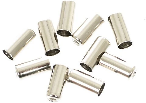 Die ungedichteten Shimano Bremszugaußenhüllen-Endkappen sind innen 5 mm und außen 6 mm im Durchmesser. Sie bestehen aus Stahl. Es werden 10 Stück geliefert.