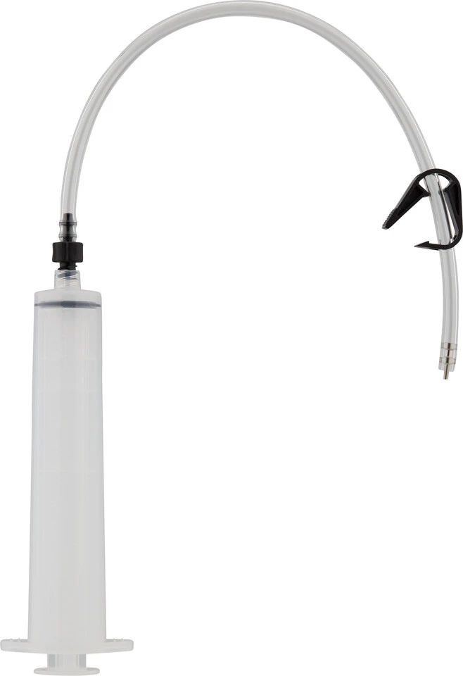 Die Entlüftungsspritze TL-BR001 hilft Dir beim Entlüften der Bremssättel von hydraulischen Shimano Scheibenbremssystemen. Über den mitgelieferten Schlauch wird sie ganz einfach mit dem Entlüftungsnippel bzw. dem Entlüftungssockel verbunden und über die Klemme gesichert. So geht kein Mineralöl verloren und der Wartungsvorgang läuft sauber ab. Die Spritze überzeugt durch ihr großzügiges Volumen und lässt sich leicht betätigen. Durch das verwendete Kunststoff-Material ist sie sehr haltbar.