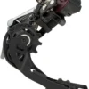 Shadow-Plus-Schaltwerke sind genauso niedrig profiliert wie die Shadow-Schaltwerke von Shimano. Darüber hinaus kommt ein Stabilisator mit Ein- und Ausschalter zum Einsatz, der das Schlagen der Kette reduziert und so einem Kettenabwurf entgegenwirkt. Zugleich führt das zu einem geräuschärmeren Antrieb. Im Vergleich zu anderen Kettenrückhaltevorrichtungen wird außerdem Gewicht gespart.