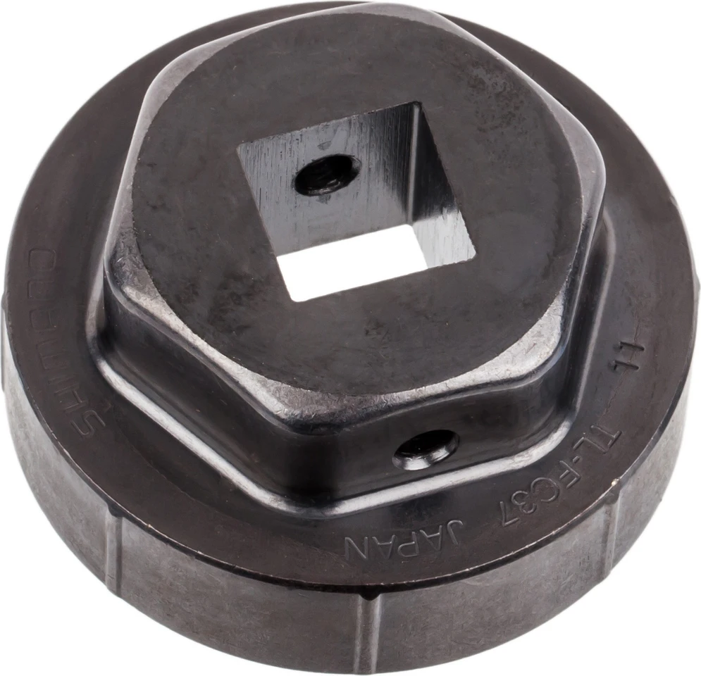 Das Shimano TL-FC37 Innenlager-Adapter-Werkzeug dient wie das TL-FC25 zur Montage und Demontage von SM-BBR60 und BB-MT800 bzw. BB-MT801 Innenlagern. Es ist aber für den Einsatz mit einem Schlagschrauber, einer Ratsche (1/2″ Vierkant) oder einem 32 mm Maulschlüssel gedacht. Der Werkzeug-Aufsatz TL-FC37 besteht aus gehärtetem Stahl und ist daher besonders stabil.