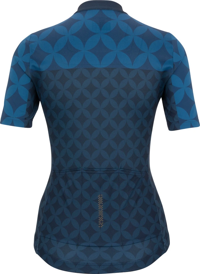 Das kurzärmelige Shimano Mizuki Damen Trikot bietet Rennradsportlerinnen viel Funktion und eine bequeme Passform zu einem überschaubaren Preis. Es besteht aus einem recycelten Polyestergemisch, welches schnell trocknet und sich angenehm frisch anfühlt. Der Schnitt ist zwar körpernah, jedoch figurneutral und nicht einengend. Auch die eingesetzten, glatt vernähten Ärmel sowie die reibungsarmen Flachnähte am Kragen erhöhen den Tragekomfort. Der schmale Camlock-Frontreißverschluss ist verdeckt ausgeführt, wodurch er sich nahtlos in die Optik des Trikots einfügt. Ein Elastikband mit Silikon-Besatz verhindert das Hochrutschen während der Fahrt. Das Mizuki Jersey hat drei Rückentaschen und wurde dort für mehr Sichtbarkeit mit Reflexelementen ausgestattet. Nicht zuletzt begeistert es mit seinen eleganten, japanisch inspirierten Mustern.