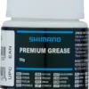 Das Shimano Premium Fett ist ein hochwertiges Schmiermittel für Nabenlager, Freilauf-Befestigungsschrauben und Gewinde-Innenlager. Speziell solche auf Dura-Ace, Ultegra-, XTR- oder XT-Niveau solltest Du damit behandeln. Das Fett wird auch für die Gewinde von Hollowtech-II-Kurbelschrauben empfohlen. Außerdem eignet es sich für Steuersätze. Es zeichnet sich durch seine besondere Haltbarkeit und seine wasserabweisenden Eigenschaften aus.