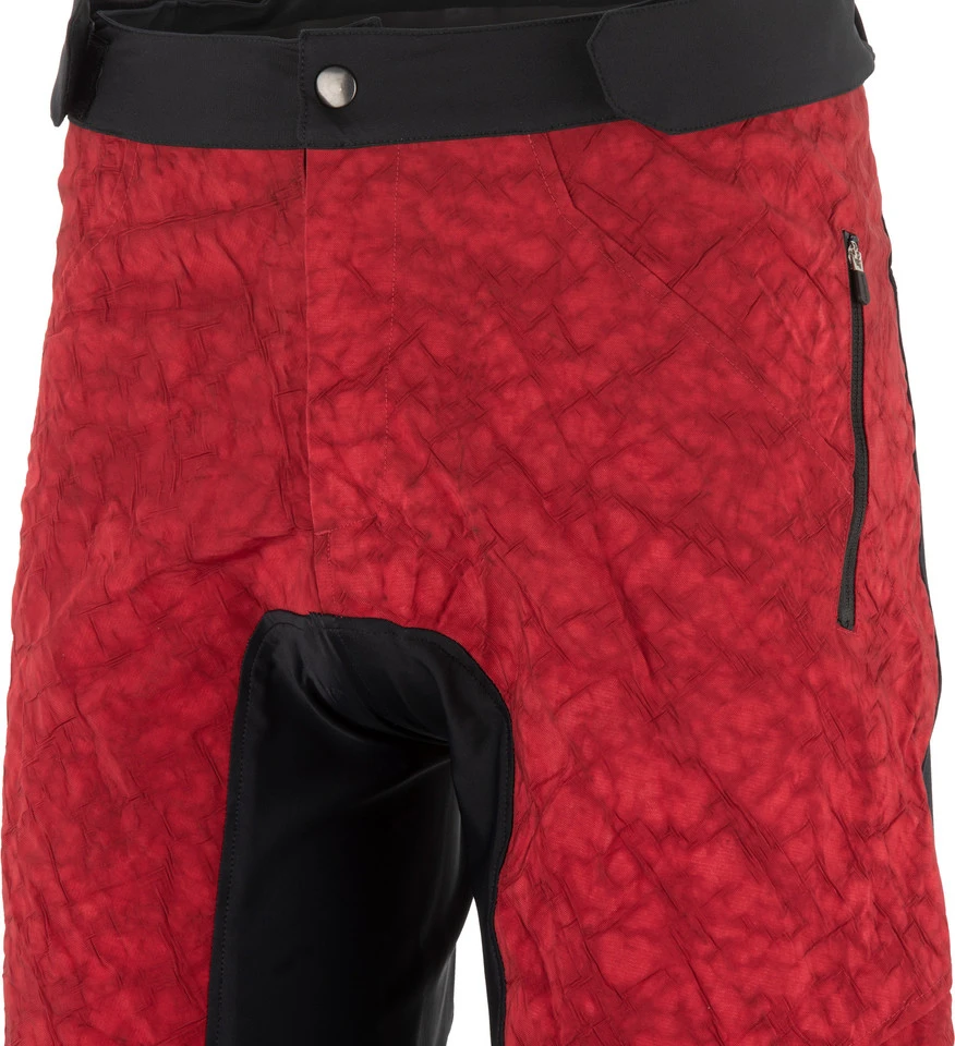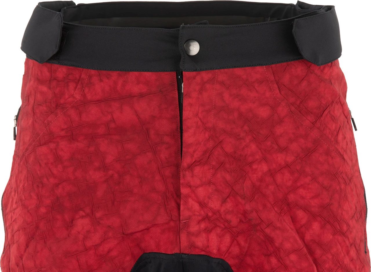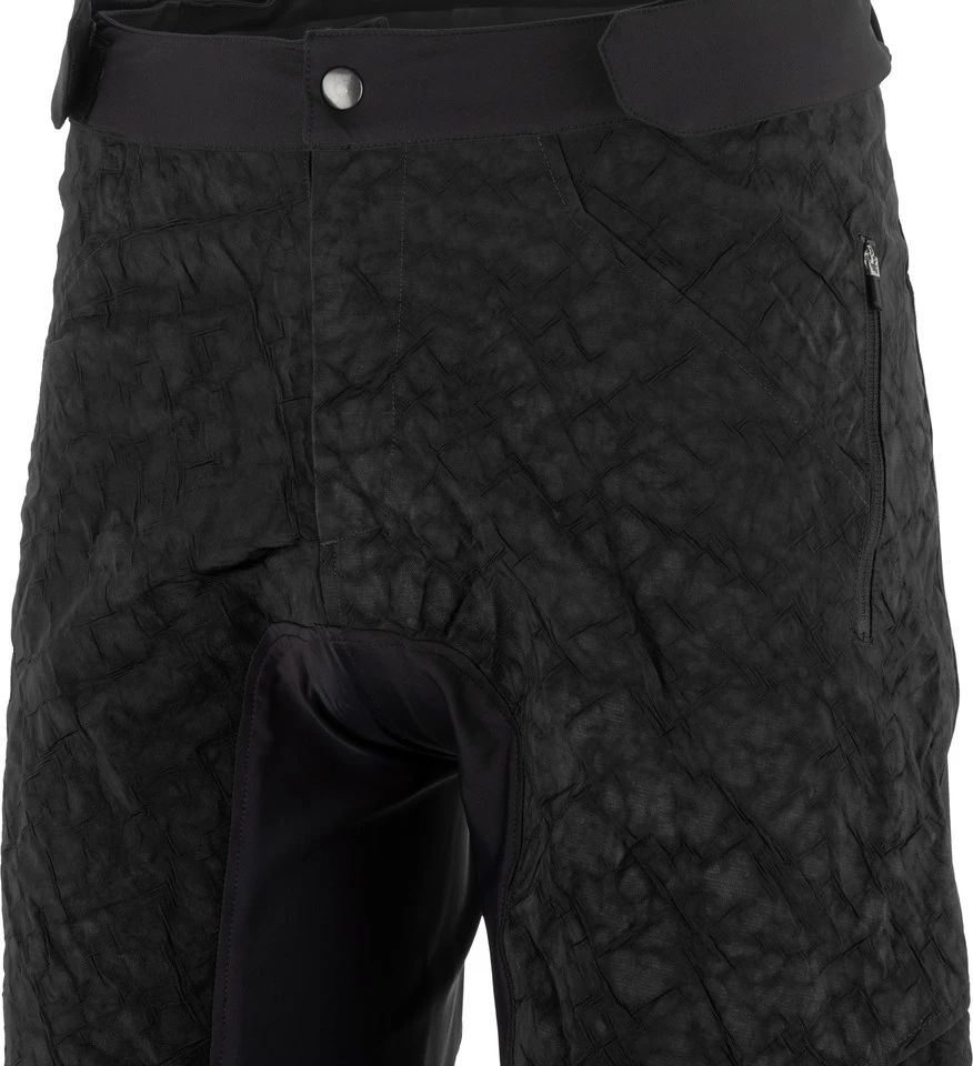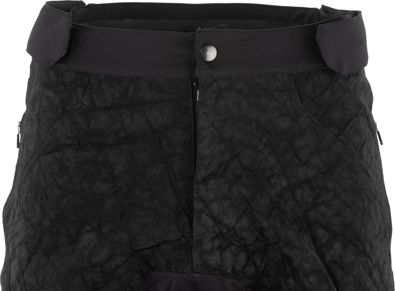 Die Revo MTB-Shorts von Shimano sind in einem Upcycling-Prozess aus nicht mehr benötigten PKW-Airbags hervorgegangen. So landen diese nicht im Müll, sondern begleiten Dich in abgewandelter, doch funktionell verwandter Form auf Deinen Biketouren. Das Material ist äußerst robust und hat eine wasserabweisende Oberfläche, die Spritzwasser und kleineren Regenschauern trotzt. Der Schrittbereich wurde mit elastischem Recyclinggewebe verstärkt, um abriebfest gegenüber dem Sattel zu sein. Ein griffiger, silikonisierter Bund auf der Rückseite und ein Knopf sowie Reißverschluss auf der Vorderseite sorgen für einen sicheren Sitz der Hose und erhalten dabei Deine volle Beweglichkeit. Außerdem kommt an den verklebten Beinabschlüssen Silikon zum Einsatz, um sie an Ort und Stelle zu halten. Die Revo weist zwei schräge Seitentaschen auf, in denen Du Zubehör verstauen kannst, ohne dass es beim Fahren nach vorne rutscht.