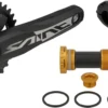Die Shimano Saint FC-M825 als 10-fach-Kurbelgarnitur mit 36-Zähne-Kettenblatt ist mit 83 mm breiten Tretlagergehäusen kompatibel. In Sachen Downhill-Performance macht ihr keiner etwas vor; ihre Robustheit und Stabilität sind seit Jahren legendär – dafür sorgen die superstarke Stahlachse und die Stahl-Pedaleinsätze. Aber auch hier wurde auf das Gewicht geachtet, wie die ausgewogene Hollowtech-II-Konstruktion der Kurbel beweist. Die FC-M825 kann optional mit einer speziellen Kettenführung ausgestattet werden.