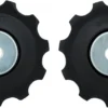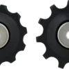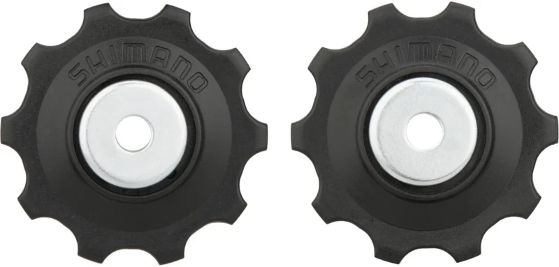 Dieses Shimano Schalträdchen Paar (Leitrolle und Spannrolle) ist für 6-, 7- und 8-fach Schaltungen geeignet. Jedes Röllchen hat 10 Zähne.