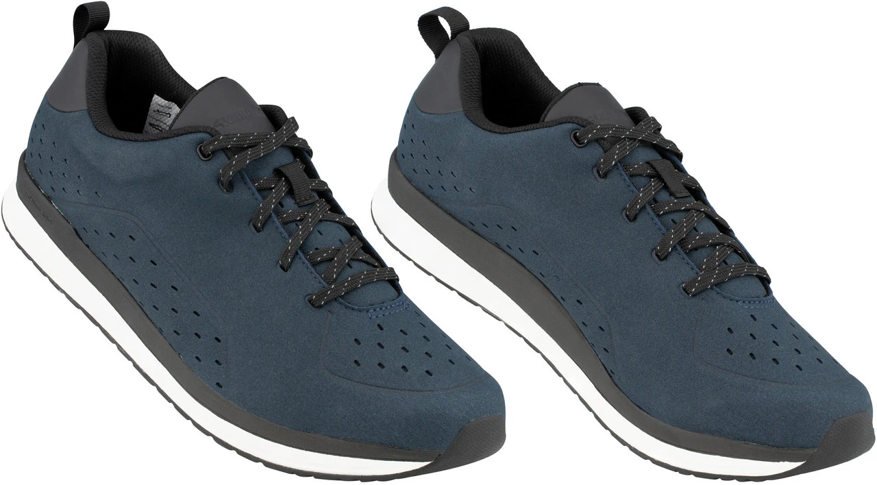 Features:lässiges Design im Sneaker-Stil für den Alltag auf dem Radverdeckte innere Versteifungsplatte unterstützt die Kraftübertragung zu den Pedalenstoßabsorbierende EVA-Mittelsohle für optimalen Gehkomforteinfache Montage der Schuhplatteoptimiert für die Pedalsysteme SPD und Shimano Click’Rblack, navy und grey hauptsächlich aus Kunstleder, olive mit Kunstleder-Anteil (leichter, stabiler und haltbarer als Echtleder)ideal in Kombination mit Pedalen PD-ED500, PD-T421Materialkennzeichnung:Obermaterial:black/navy/grey: Sonstiges (Kunstleder); olive: Textil (Mesh), Sonstiges (Kunstleder)Futter und Decksohle:Textil (Mesh)Laufsohle:Sonstiges (Gummi)Technologie:Shimano Click’R
