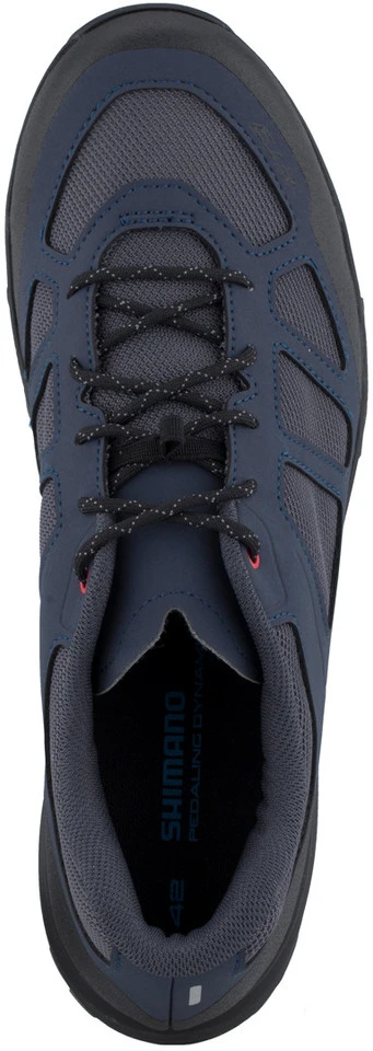 Spezifikationen:Einsatzbereich:All Mountain, Touring & TrekkingPedalsystem:PlattformVerschluss:SchnürungFeatures:Power Blade: halbsteife Zwischensohlenplatte für effiziente Kraftübertragung aufs Pedal360° Traction: spezielles Blockprofil der Sohle für Griffigkeit auf unterschiedlichen Pedalen und Untergründen, bergauf und bergabadaptive Querrillen in der Sohle bieten Halt für unterschiedliche Pedalkäfige und Pinsgeschützte Zehenboxreflektierende Detailsals für E-Bike geeignet eingestuftideal in Kombination mit Pedalen PD-T8000, PD-M324, PD-EH500, PD-EF102Materialkennzeichnung:Obermaterial:Sonstiges (Kunstleder), Textil (Mesh)Futter und Decksohle:Textil (Mesh)Laufsohle:Sonstiges (Gummi)Größenberatung:Diese Shimano Schuhe fallen kleiner aus, als man der Größe nach erwarten könnte. Am besten eine Nummer größer als gewohnt bestellen.