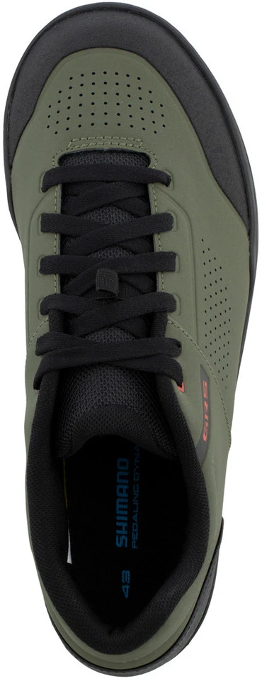Spezifikationen:Einsatzbereich:Enduro, Downhill, Dirtjump & SlopestylePedalsystem:PlattformVerschluss:SchnürungSteifigkeitswert der Sohle:2 (auf einer Skala von 1 bis 12)Features:Kunstleder: heller, stärker und langlebiger als Echtledergriffige Shimano Gummisohle für hervorragenden Halt auf Pedal und BodenOberschuh aus robustem Synthetikmaterial mit Mesh-Einsätzen für Schutz und Atmungsaktivitätverstärkter Zehen- und KnöchelschutzVolume-Tour-Leisten für ganztägigen Komfort auf und abseits des Bikesideal in Kombination mit Pedalen PD-GR500, PD-GR400Materialkennzeichnung:Obermaterial:Sonstiges (Kunstleder)Futter und Decksohle:Textil (Mesh)Laufsohle:Sonstiges (Gummi)Größenberatung:Diese Shimano Schuhe fallen kleiner aus, als man der Größe nach erwarten könnte. Am besten eine Nummer größer als gewohnt bestellen.