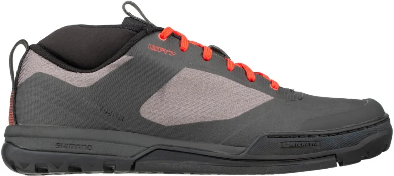 Die Shimano SH-GR7 Schuhe (SH-GR701) sind vielseitige Schuhe für Plattformpedale, die Trail-, DH- und Enduro-Fahrer mit ihrem exzellenten Grip und ihren sehr guten Geheigenschaften erfreuen werden. Dahinter steckt die exklusive Michelin Außensohle aus Gummi mit ihrer besonderen Griffigkeit. Auch für Schutz vor Geröll ist gesorgt – dank Sprunggelenkschaft, seitlich hochgezogener Sohle und Zehenkappe. Das Obermaterial trocknet sehr schnell und wurde zusätzlich mit TPU verstärkt.