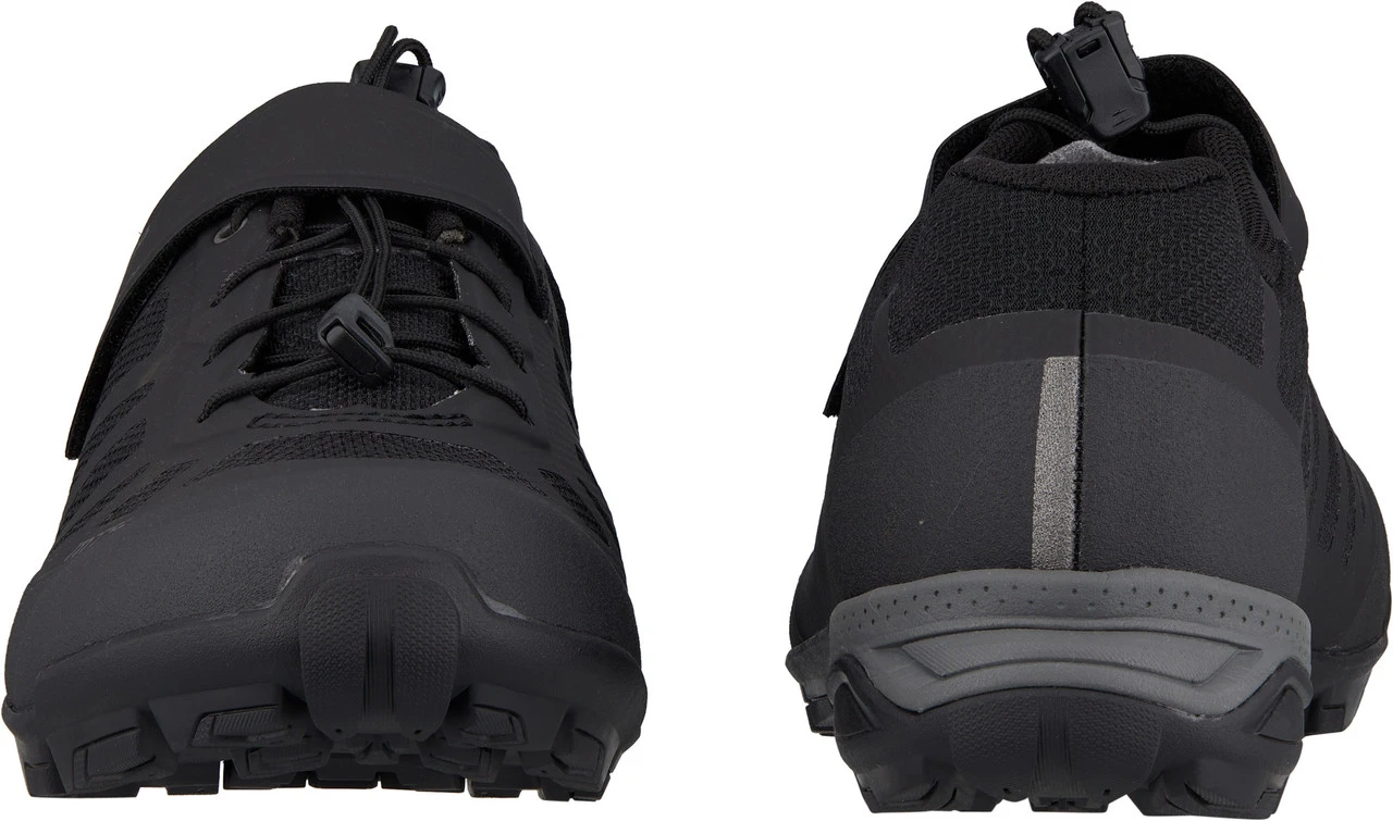 Der Shimano SH-MT502 für den Mountain-Touring-Einsatz, kurz MT5 genannt, verbindet die Funktion eines leistungsfähigen MTB-Schuhs mit dem hohen Gehkomfort eines Wanderschuhs. Über das Speed-Lacing-Schnürsystem und einen zusätzlichen Riemen stellst Du ganz einfach die Passform ein. Atmungsaktive Netzgewebeeinsätze im leichten Oberschuhmaterial sorgen dafür, dass Deine Füße nicht überhitzen. Auch das erweiterte Volumen im Fußballenbereich leistet seinen Beitrag zum angenehmen Tragegefühl. Die stoßabsorbierende Schaumstoff-Zwischensohle und die Gummiaußensohle unterstützen Dich beim Fahren und Gehen, wobei durch eine Versteifungsplatte zusätzliche Stabilität erzielt wird.