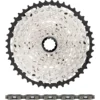Diese SLX M7100 Komplettgruppe von Shimano besteht aus einer 1×12-fach-Kurbel mit 32-Zähne-Kettenblatt, einem Schaltwerk sowie einem rechtsseitigen Schaltgriff, wobei Du die Wahl zwischen Klemmschellen- und I-Spec-EV-Montage hast. Außerdem gehören eine Quick-Link-Kette und eine Kassette mit 10-45 oder 10-51 Abstufung dazu.