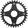 Das Shimano STEPS Kettenblatt SM-CRE80-12-SB für E-Mountainbikes mit 12-fach-Schaltung und 56,5 mm Kettenlinie eignet sich für FC-E8000, FC-E8050, FC-M8050 und andere E-Bike-Kurbeln. Es wird über einen Lockring, welcher zur Motoreinheit gehört, auf der Achse befestigt. Dank eines speziellen Zahnprofils namens Dynamic Chain Engagement+ kannst Du Dir des Kettenrückhalts auch auf ruppigem Terrain sicher sein. Zugleich unterstützt diese Technologie Dich beim gleichmäßigen Pedalieren. Das Kettenblatt hat einen 4-Arm-Lochkreisdurchmesser von 104 mm und besteht aus Stahl. Der bereits montierte Spider, der für die Kettenlinie von 56,5 mm sorgt, ist aus Aluminium gefertigt.