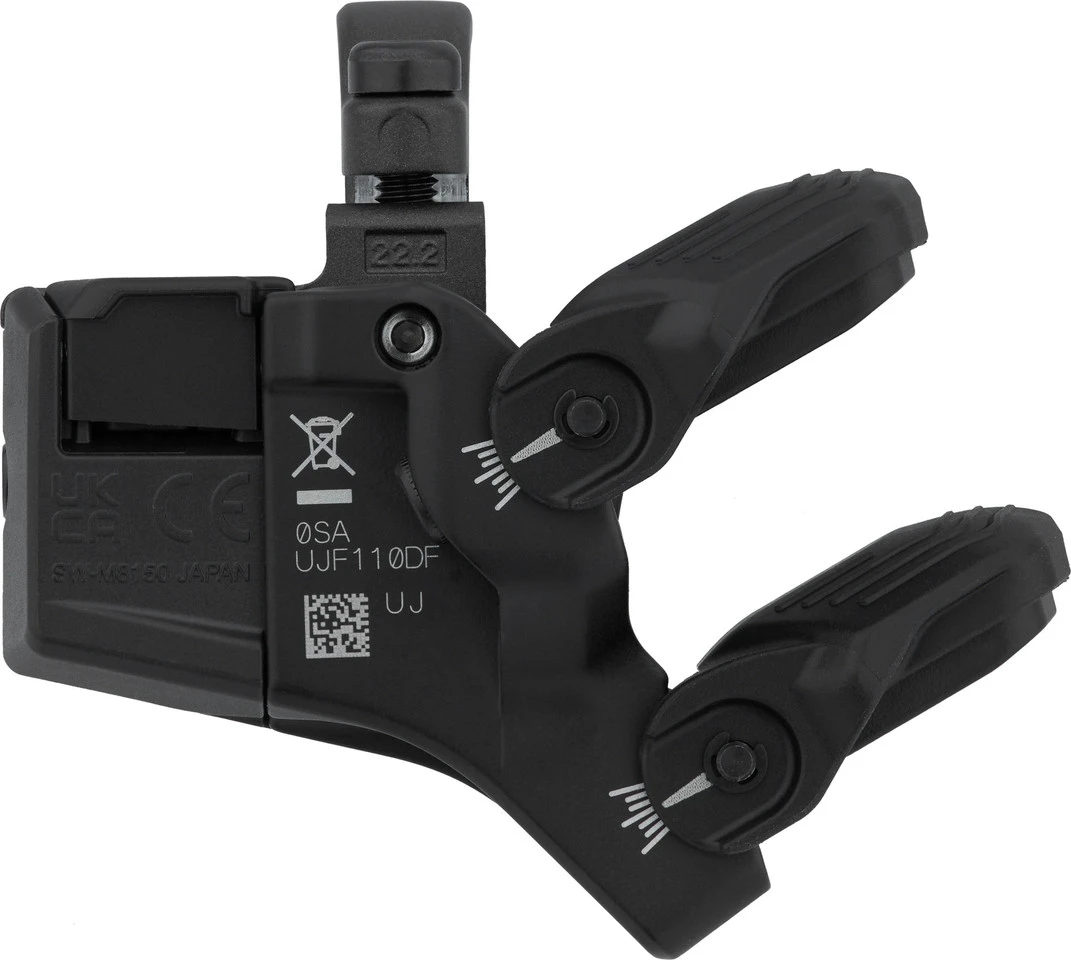 SW-M8150 wird über eine Klemmschelle rechtsseitig an MTB-Lenkern mit 22,2 mm Klemmdurchmesser befestigt. Der Anschluss an das Di2-E-Bike-System erfolgt über den neueren Kabeltyp EW-SD300.