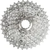 Die Shimano XT CS-M770 Kassette ist für Trekkingfahrer, die beim guten alten 9-fach Antrieb bleiben wollen, immer noch die Kassette der Wahl. Der Ritzel-Träger aus Aluminium und die neun Ritzel aus Stahl überzeugen durch perfekte Steifigkeit. Dennoch ist die Kassette so leicht, dass sie sich auf langen Touren nicht als lästiger Ballast bemerkbar macht. Und auch wer kürzere Strecken bevorzugt, wird von der CS-M770 profitieren können, denn Shimano hat seine XT Serie für die Bedürfnisse unterschiedlicher Fahrertypen ausgelegt. Das gestrahlte Chrom-Finish sorgt für einen gewissen Glanzeffekt. Natürlich verfügt auch diese Kassette über das Hyperglide (HG) Ritzeldesign, mit dessen Hilfe die Kette weich und optimal gleitend von einem Ritzel zum anderen befördert wird.