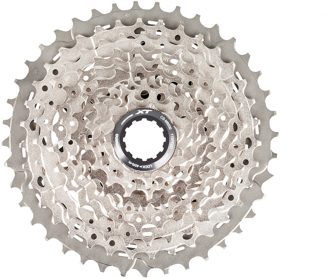 Spezifikationen:Einsatzbereich:Cross Country, All Mountain, GravelSchaltstufen:11-fachAbstufungen:11-40, 11-42, 11-46Material Ritzel:Stahl, AluminiumFreilaufkompatibilität:Shimano MTBHinweis:mit 1,85 mm Distanzring kompatibel zu Shimano Road 11-/12-fachTechnische Daten:Serie:Deore XT M8000Spider / Ritzelträger:2 (Aluminium)Empfohlene Kette:HG-X11 (bspw. CN-HG701-11)Kompatibilität:Schaltgriff:SL-M9000, SL-M8000, SL-M7000-11, SL-M5100, SW-M9050, SW-M8050Schalt-/Bremsgriff:ST-RX810, ST-RX600, ST-R9150, ST-R9160, ST-R9170, ST-R9180, ST-9070, ST-R8050, ST-R8060, ST-R8070, ST-9071, ST-6870, ST-6871, ST-RX815, ST-R785Schaltwerk:
