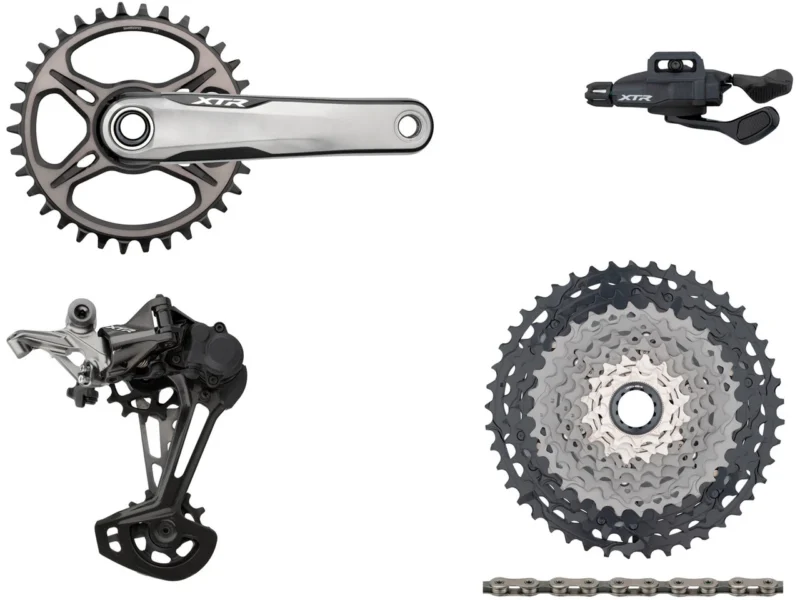 1 x Kurbel Shimano XTR XC (FC-M9100-1)1 x Kettenblatt Shimano 34 Zähne (SM-CRM95)1 x Schaltwerk Shimano XTR Shadow Plus (RD-M9100)1 x Schaltgriff Shimano XTR (SL-M9100-I)1 x Kassette Shimano XTR (CS-M9100-12)1 x Kette Shimano XTR (CN-M9100)1 x Kurbel-Lockring Shimano mit Unterlegscheibe1 x Innenzug Shimano (2050 mm)1 x Außenhülle Shimano (1800 mm)1 x Kassetten-Abschlussring Shimano Aluminium1 x Kunststoff-Spacer für Kassette1 x Kettenschloss Shimano SM-CN910-12 Quick-Link