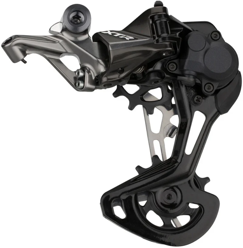 Das XTR RD-M9100 Schaltwerk wurde von Shimano ausschließlich für 1×12-fach Antriebe ausgelegt. Es verfügt über vergrößerte Schalträdchen mit 13 Zähnen für einen geschmeidigeren Lauf und über einen zusätzlichen Anschlag an der Schaltschwinge, welcher die Geräuschentwicklung hemmt. Natürlich kommt auch hier die Shadow+ Dämpfungstechnologie zum Einsatz, bei der ein Stabilisator dem Durchhängen, Schlagen und Abfallen der Kette entgegenwirkt. Einige Teile des RD-M9100 bestehen aus gewichtsparendem Carbon. Das XTR Schaltwerk ist in zwei Versionen erhältlich, nämlich mit kürzerem Käfig (GS) für 10-45 Kassetten und mit langem Käfig (SGS), welcher 10-51 Kassetten schalten kann.